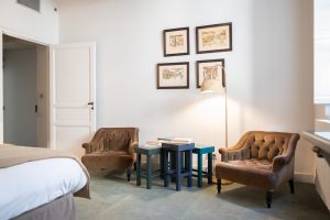 18m22 lits jumeaux 90×200 ou lit King Size 180×200 avec surmatelasSalle de bain avec douche et penderieClimatisation, TV, wifi, moustiquaireTarif direct : 200€ TTC petit déjeuner compris