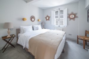42m2 – 3,5m de hauteur sous plafond avec poutresLit King Size 180×200 avec surmatelasSalle de bain avec douche, double baignoire, double vasque et penderieClimatisation, TV, wifi, moustiquaireTarif direct : 300€ TTC petit déjeuner compris